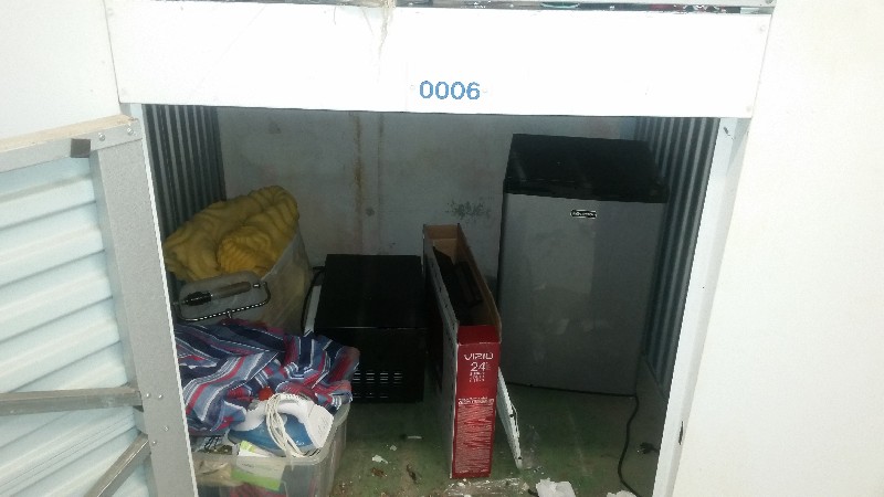 This is a 5x5 locker in the basement. In this unit is a mini fridge, 19' flat screen television, microwave and other miscellaneous items