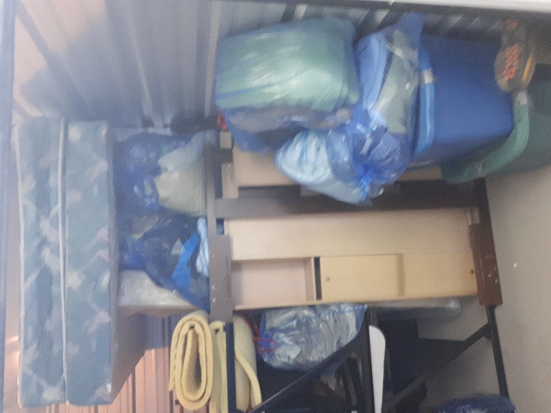 Looks to have shelving units, bedroom furniture and mattress.Some boxes and bins of mystery items of which the contents are unknown. Only the winner will know for sure. Items in boxes and bins may or may not be what is represented or written on the outside of the box or bin.