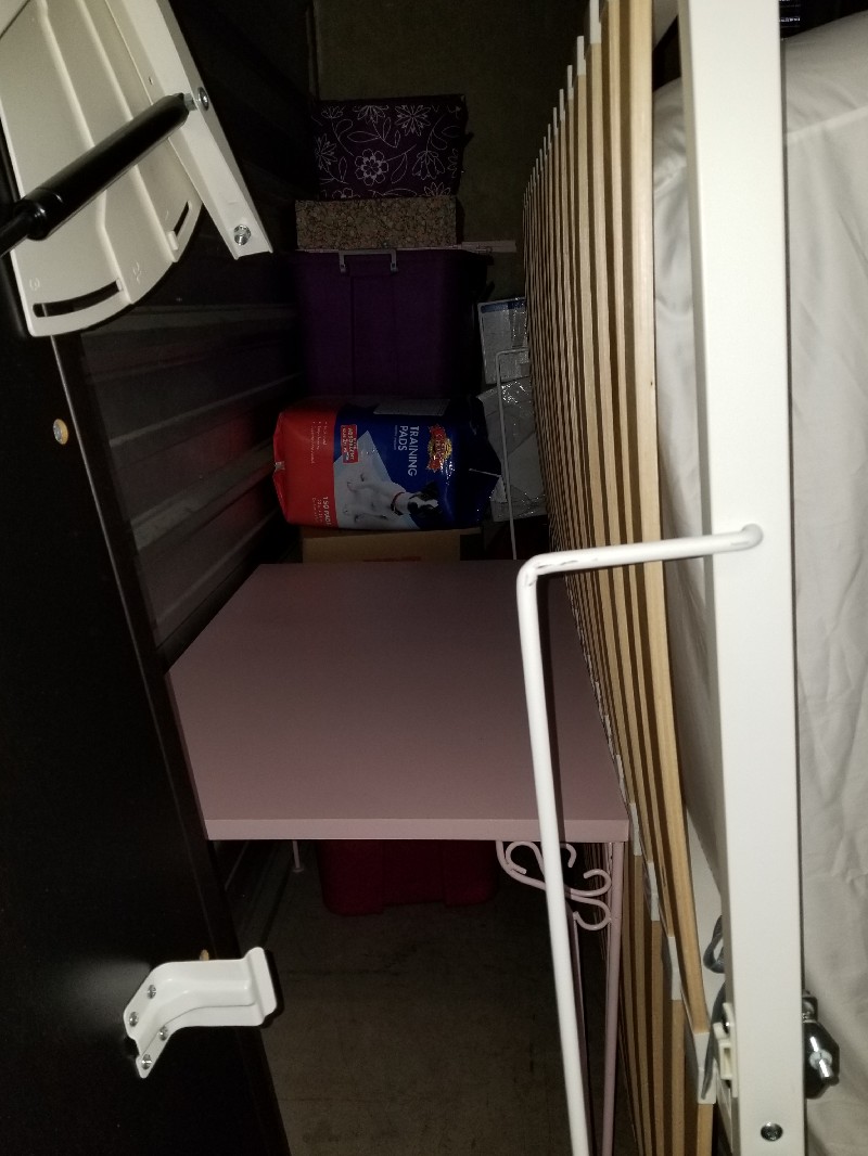 Featuring a beautiful pink desk, bedframe/mattress, a keyboard player, and a 150 pack of puppy training pads(Unsure if any missing)