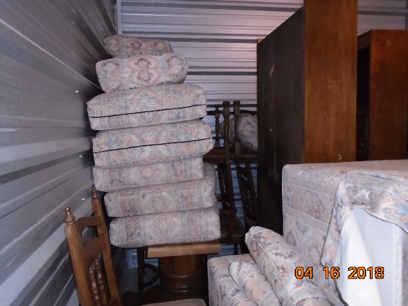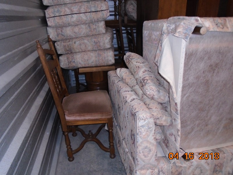 The Unit appears to contain: couch, kitchen table, 4 kitchen table chairs, hutch, love seat, shelving units.