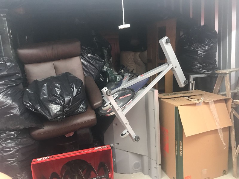 Grass Cutting Machine, Tons of boxes, star trac cycle for gym, t.v, cupboard, mini bar fridge, 2 piece white couch and much more.