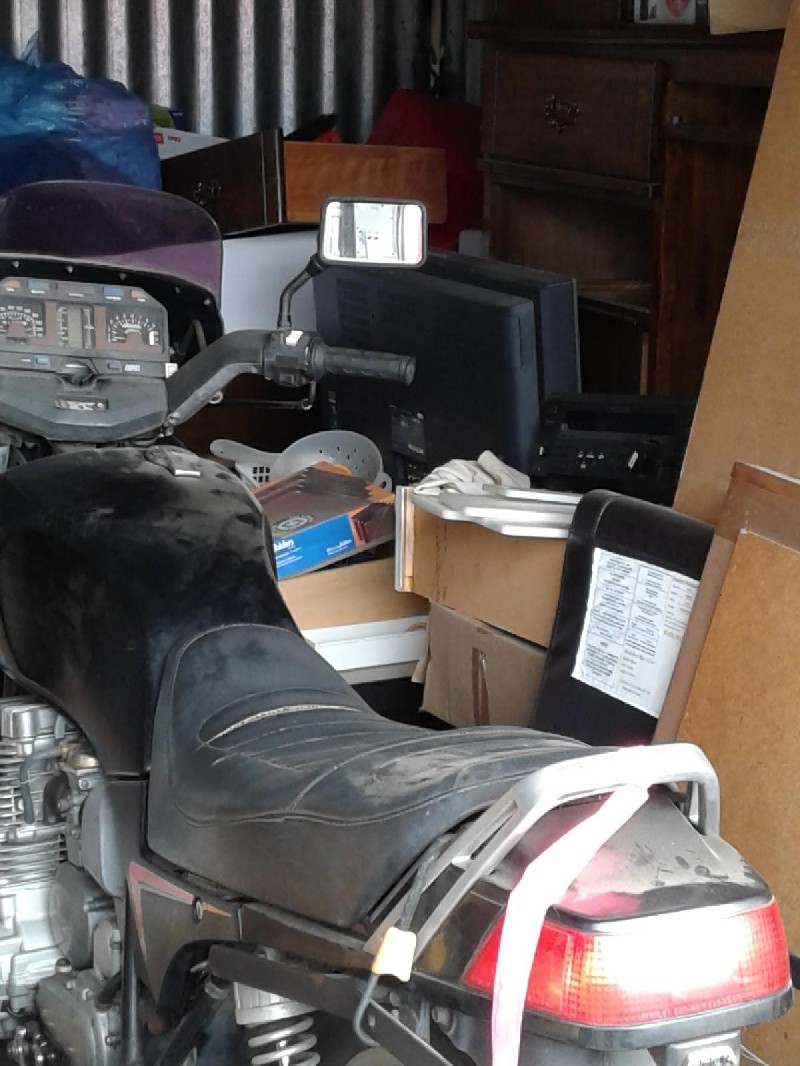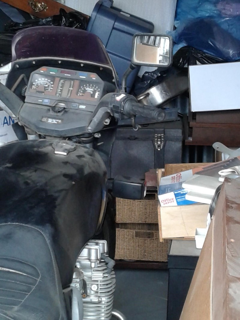 The motorcycle pictured in the unit will require a truck with a ramp to remove it from the property.