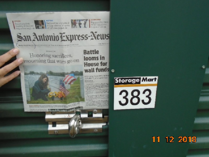 Le paiement doit être reçu en entier dans un délai de 24 heures suivant la fermeture des enchères. Si l’enchère n’est pas réclamée dans le délai de 24 heures, le gagnant sera déclaré forfait et l’enchérisseur ayant l’enchère la plus élevée suivant sera sélectionné. Téléphonez (210) 680-1081 pour effectuer le paiement et la cueillette. Le paiement doit être fait en personne sur les lieux. NOUS ACCEPTONS LES PAIEMENTS EN ARGENT COMPTANT, AVEC CARTES DE DÉBIT ET DE CRÉDIT. Un dépôt de 50 $ à 200 $ EN ARGENT SEULEMENT doit être également fait afin de s’assurer que l’unité sera entièrement vidée dans un délai de 48 heures. Le dépôt sera remis seulement si l’unité est vidée. Si vous n’apportez pas un dépôt en argent, la compagnie d’auto entreposage peut vous refuser l’accès à l’unité. Toutes les ventes sont FINALES, aucun remboursement et la taxe doit être appliquée. ..