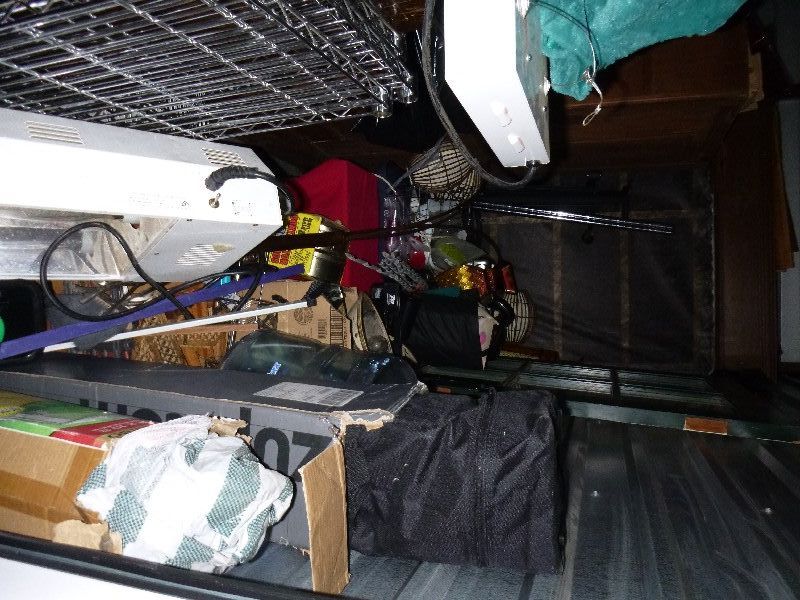 Bags, Boxes, Dishes, Dresser, Mattress, Shelves, Misc.