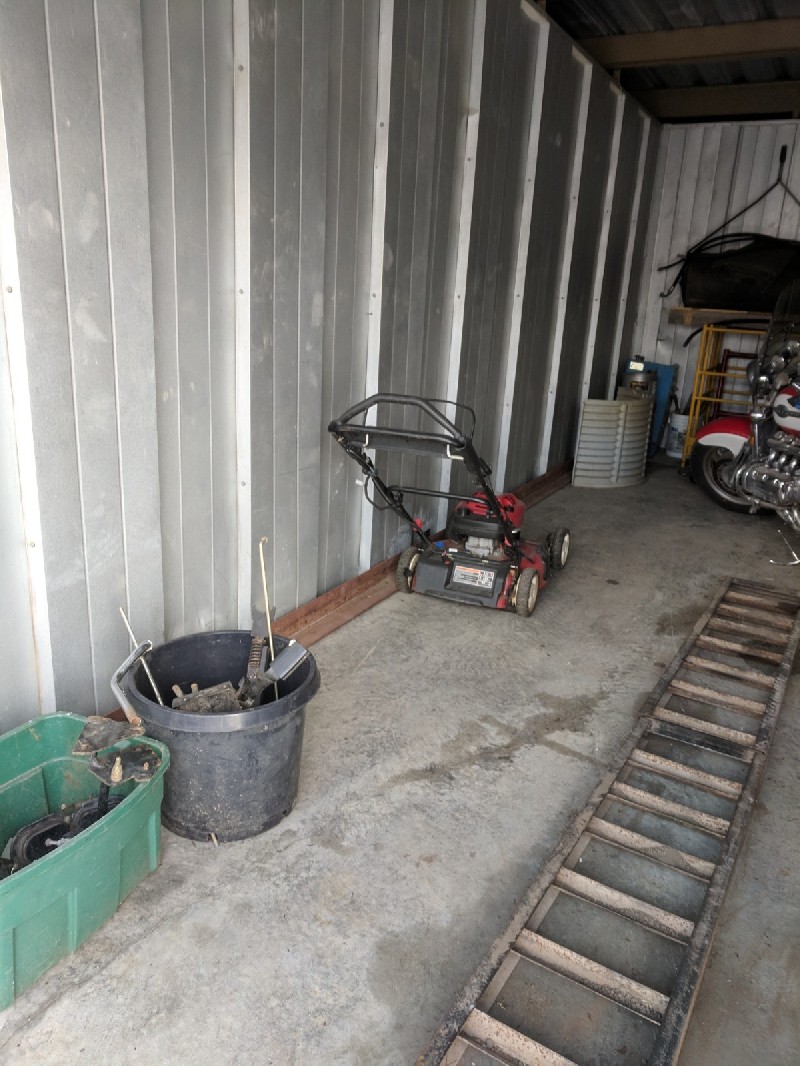 Unit Appears to Contain: Car Tires, Small Tires, Lawn Mower, Scaffolding