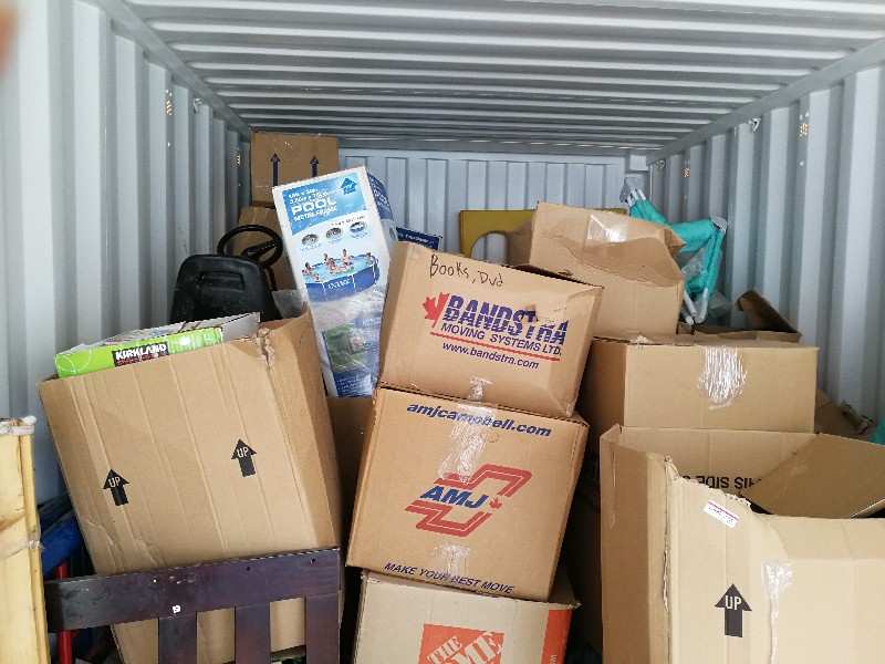 House hold items. lots of unpacked boxes. Unit is left as customer packed.