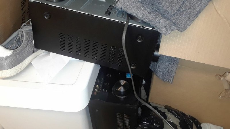 boxes, tubs, shoes, stereo equipment, air conditioner