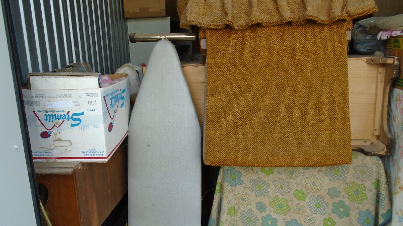 unit seems to contain furniture, a/c unit, boxes, cabinets Kitchen ware, chairs,