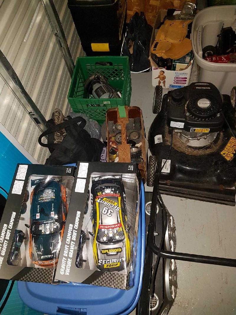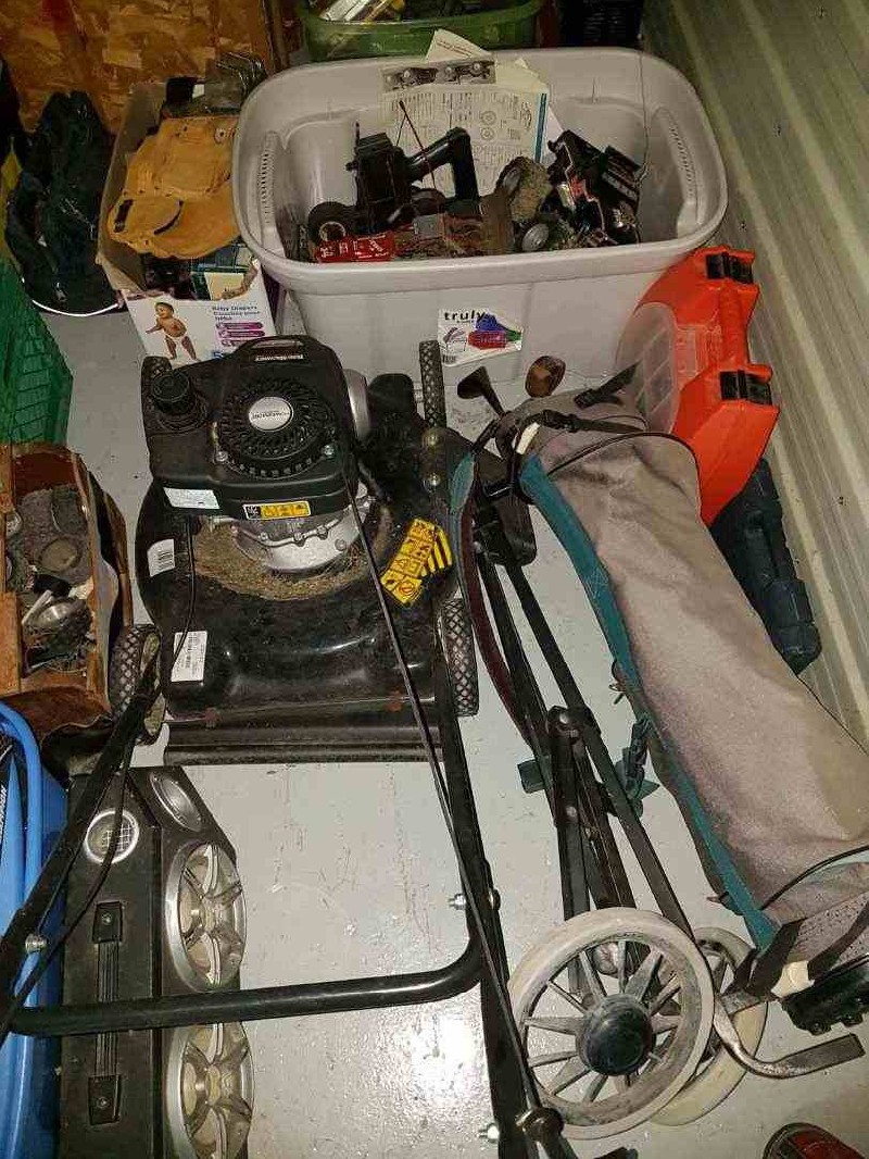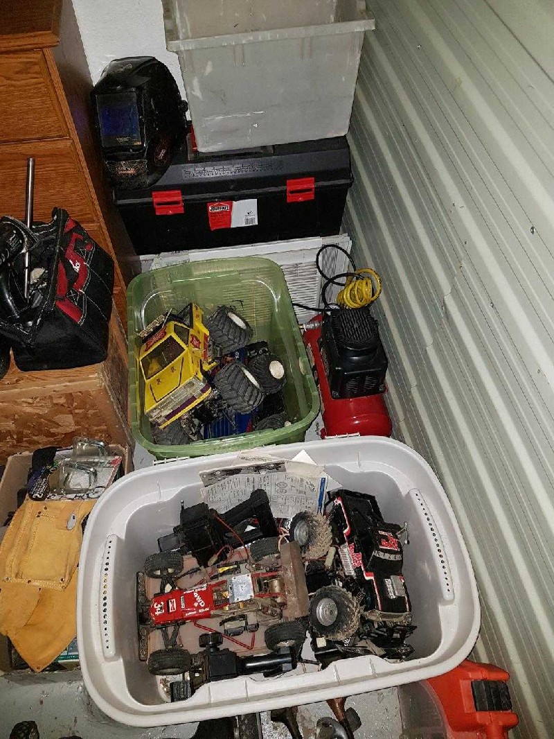Remote Contol Cars, Golf Clubs Lawn Mower, Tool Box, wood chest, dresser.