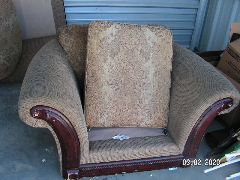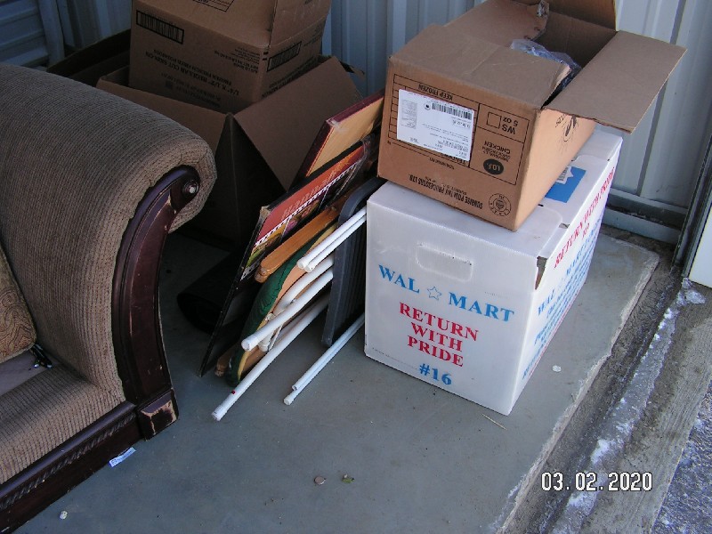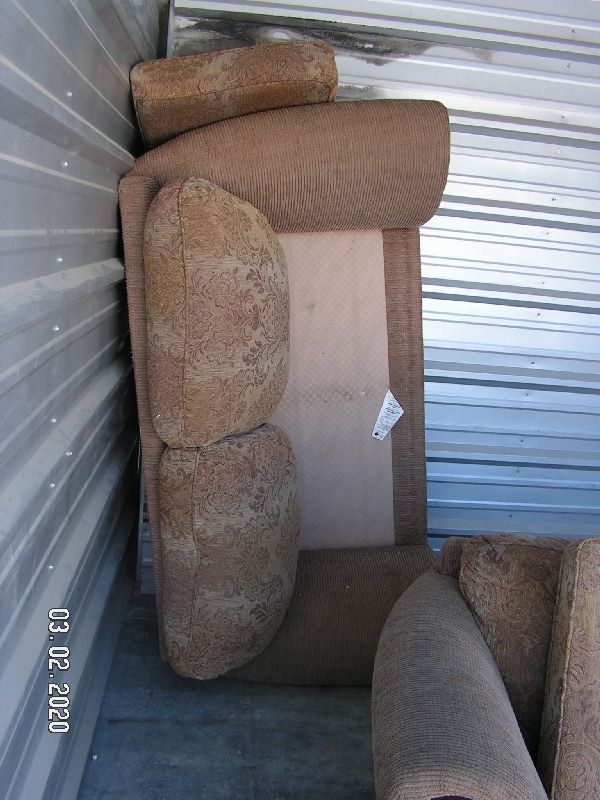 The Unit Appears to Contain: Couch, Chair, Ironing Board, Clothes, Picture Frame