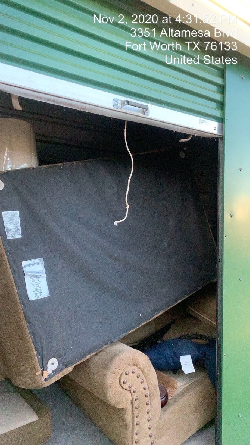 Le paiement doit être reçu en entier dans un délai de 24 heures suivant la fermeture des enchères. Si l’enchère n’est pas réclamée dans le délai de 24 heures, le gagnant sera déclaré forfait et l’enchérisseur ayant l’enchère la plus élevée suivant sera sélectionné. Téléphonez (817)-330-6246 pour effectuer le paiement et la cueillette. Le paiement doit être fait en personne sur les lieux. NOUS ACCEPTONS LES PAIEMENTS EN ARGENT COMPTANT, AVEC CARTES DE DÉBIT ET DE CRÉDIT. Un dépôt de 50 $ à 200 $ EN ARGENT SEULEMENT doit être également fait afin de s’assurer que l’unité sera entièrement vidée dans un délai de 48 heures. Le dépôt sera remis seulement si l’unité est vidée. Si vous n’apportez pas un dépôt en argent, la compagnie d’auto entreposage peut vous refuser l’accès à l’unité. Toutes les ventes sont FINALES, aucun remboursement et la taxe doit être appliquée. ..