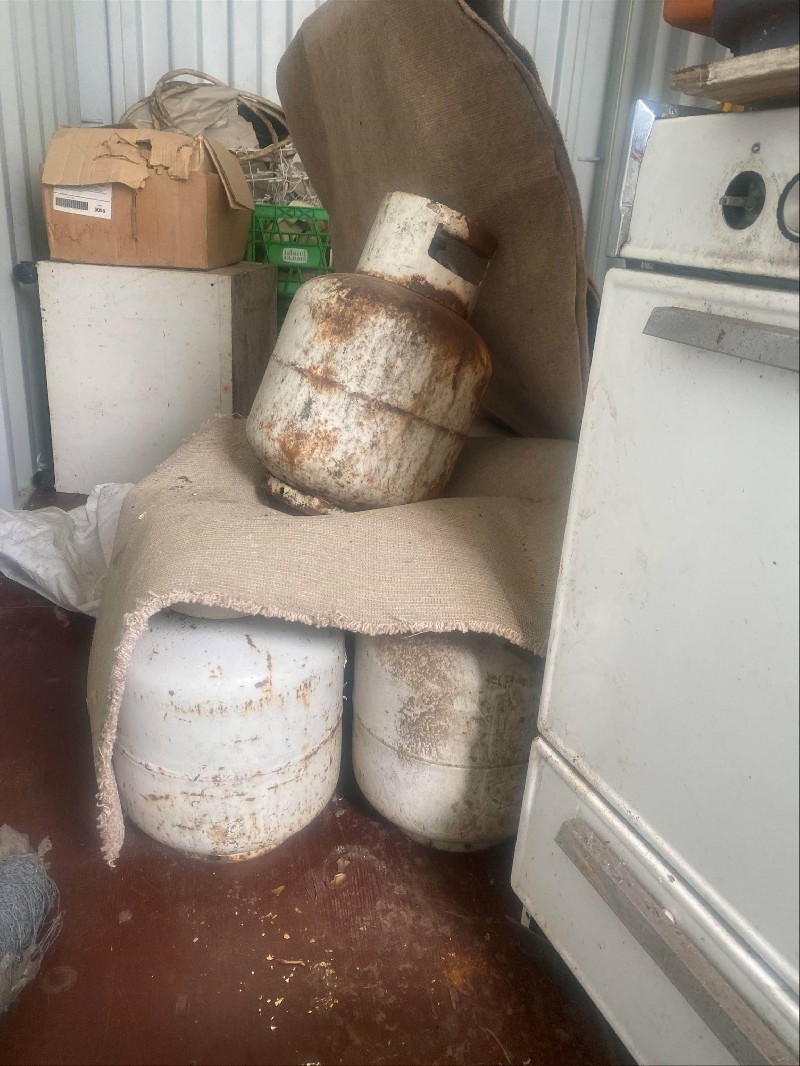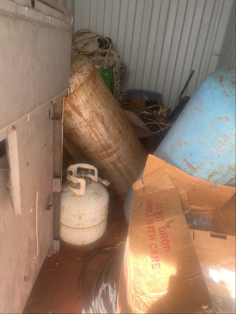 All items up for auction inside BigSteelbox, filled with what we believe to be: boxes, a stove, propane tanks and other miscellaneous items