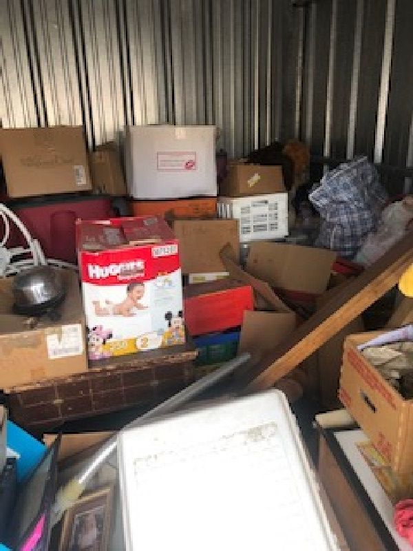 unit is full of furniture and miscellaneous boxes
