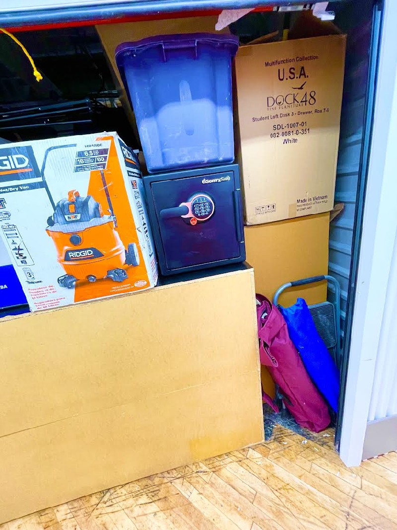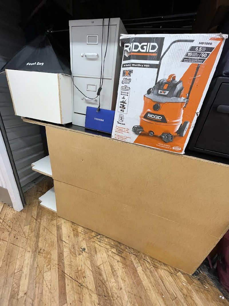 Safe, Computer items, Boxes, Rubbermaid, Bins, DVDs, Treadmill, Doctors Scale, Appliances, Toys, Shoes, Electronics, Furniture.
