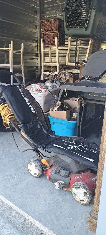 collectables, lawn and garden tools, furniture, auto accessories, household items stressless chair.