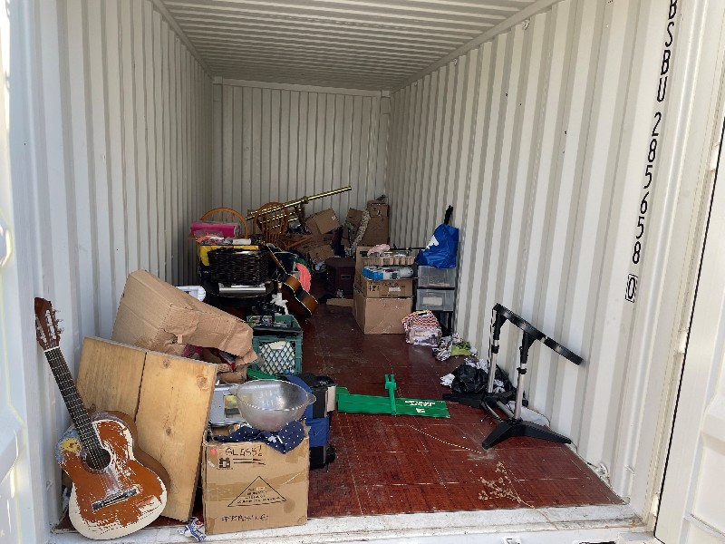 All items are up for auction inside this BSB unit. Which is loaded with what we believe to be furniture, guitars, boxes, and other miscellaneous items