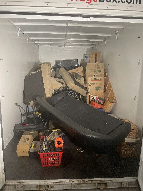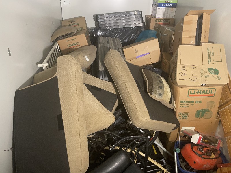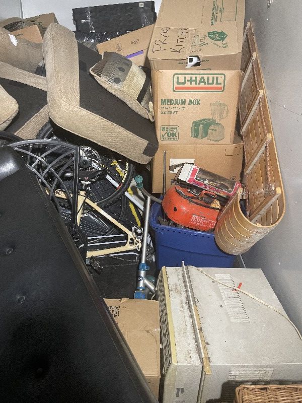 Appears to include multiple couches and sofas, tools, tool boxes, coffee table, bike, air conditioner, kitchenware, shelving units and much more!!!