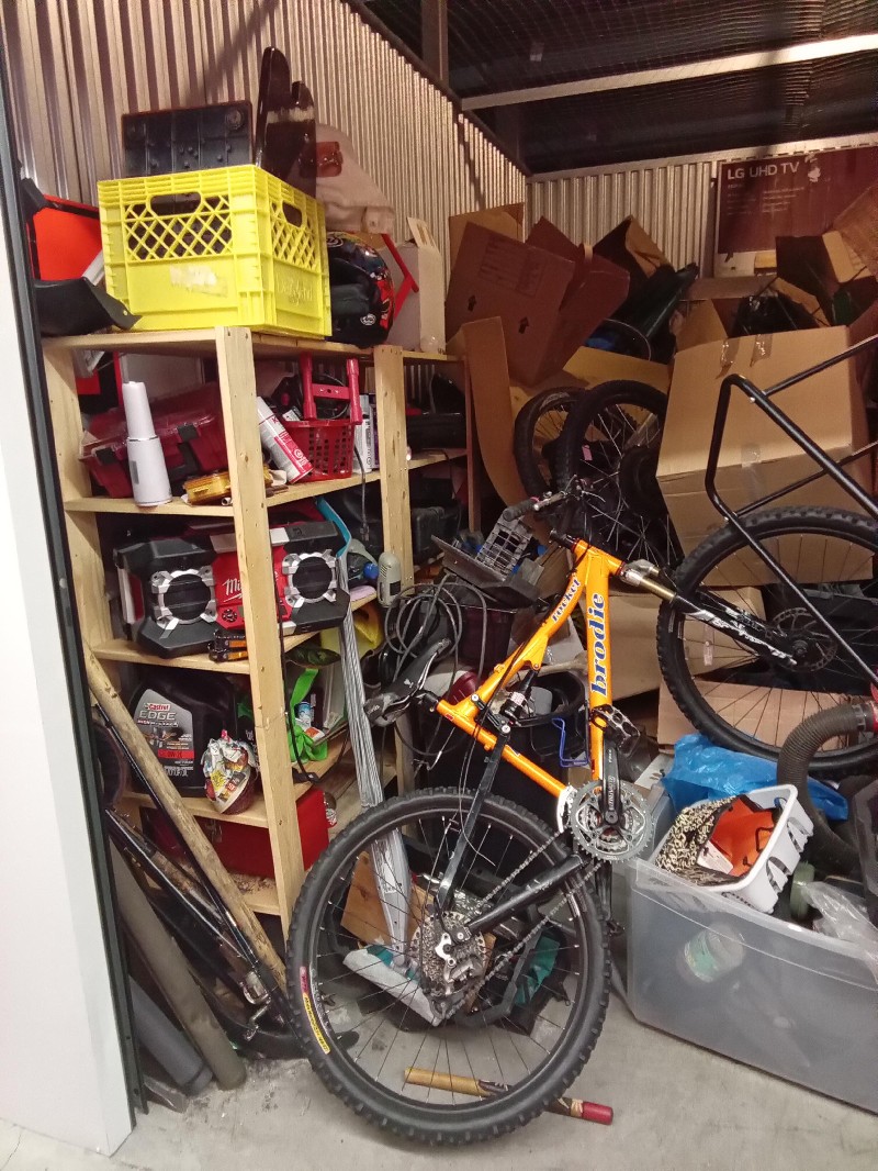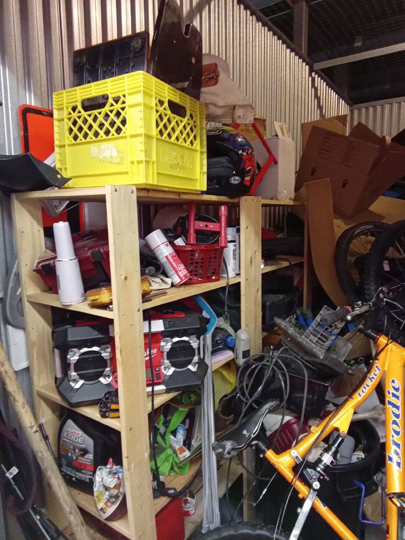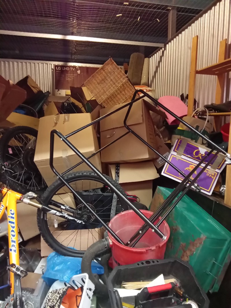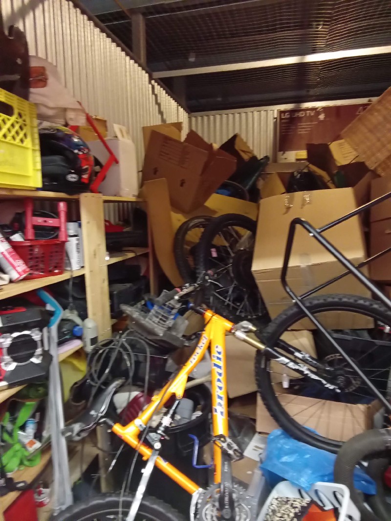 Fishing Equipment, Boxes, Bicycle, Tools.