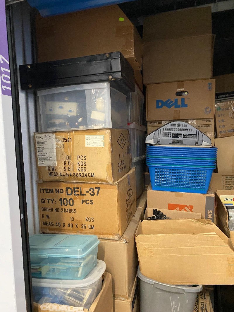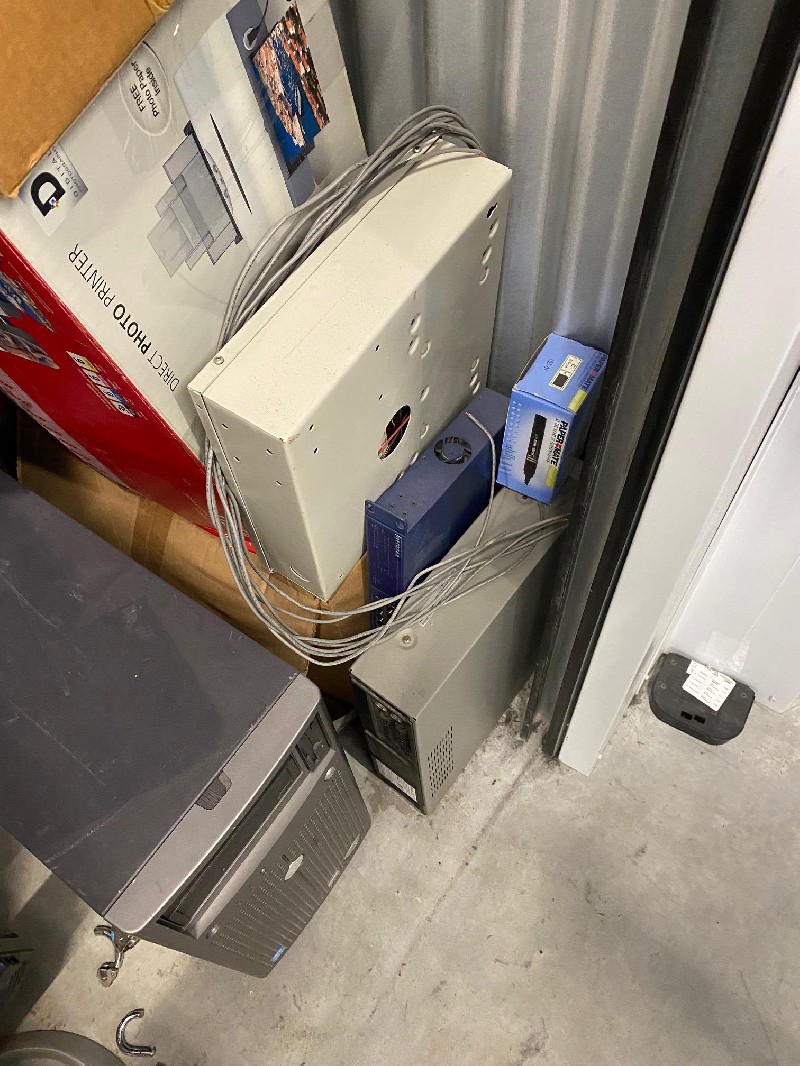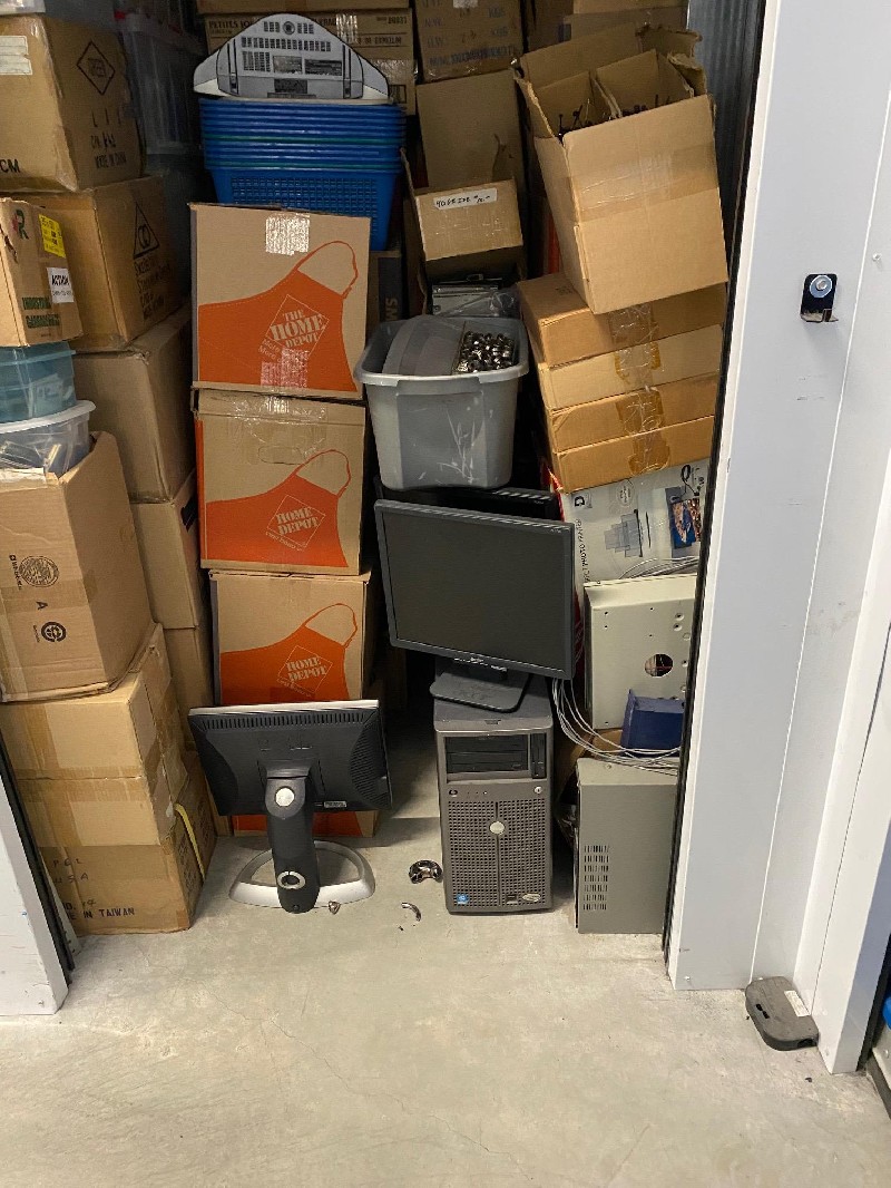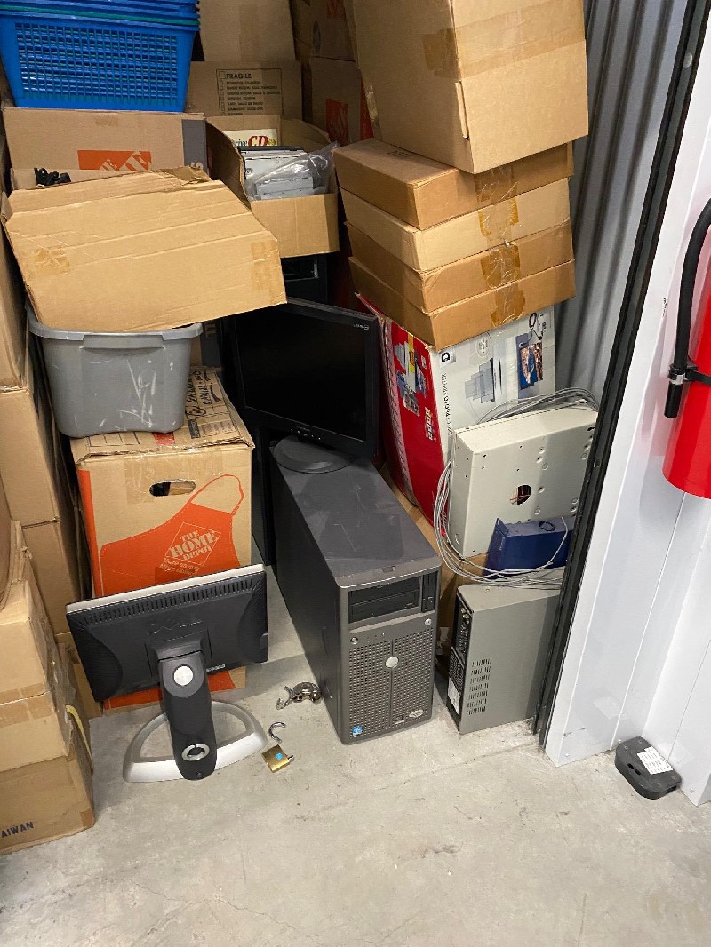 Approx. 100% Full. Computers, Monitors, PC Parts, Printer, Briefcase, Boxes and Totes
