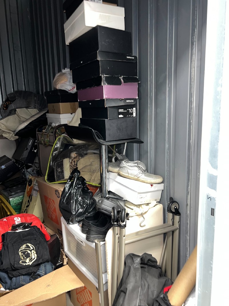 Several Bins, Suit Cases, Clothes, Boxes, Bins and Shoe Boxes.