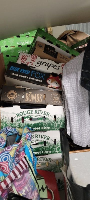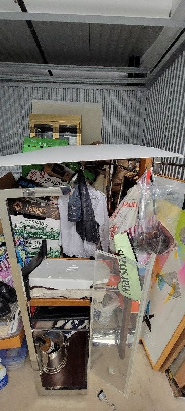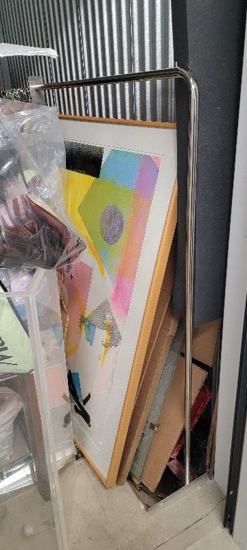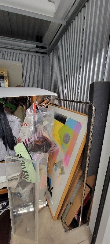 Art, clothes, chairs, storefront items, toys, table, cabinet