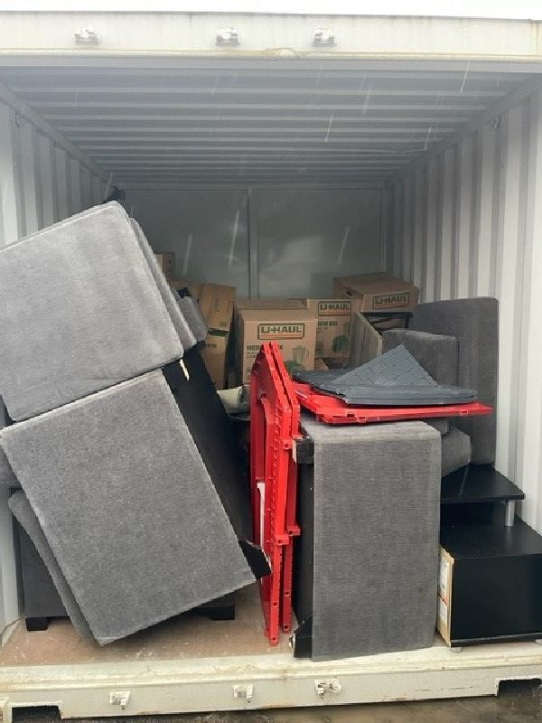 All items inside this BSB unit are up for auction. Which is loaded with what we believe to be boxes, furniture, and other miscellaneous items