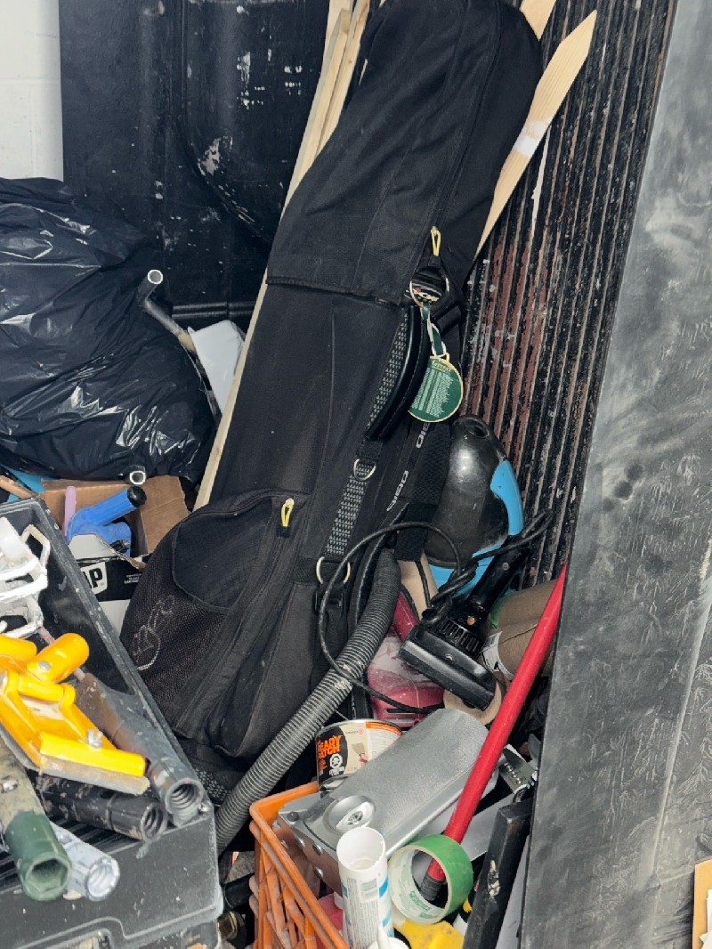 Painting supplies, golf bag, extension cords, etc.