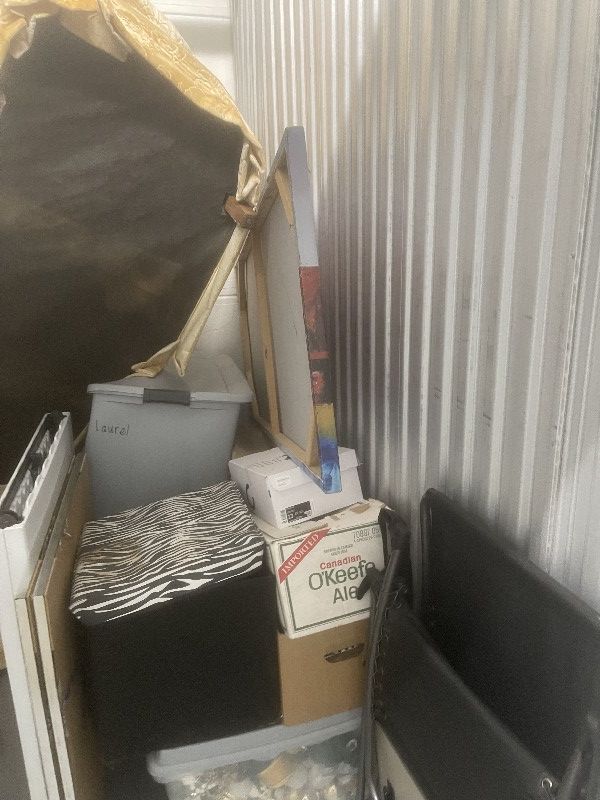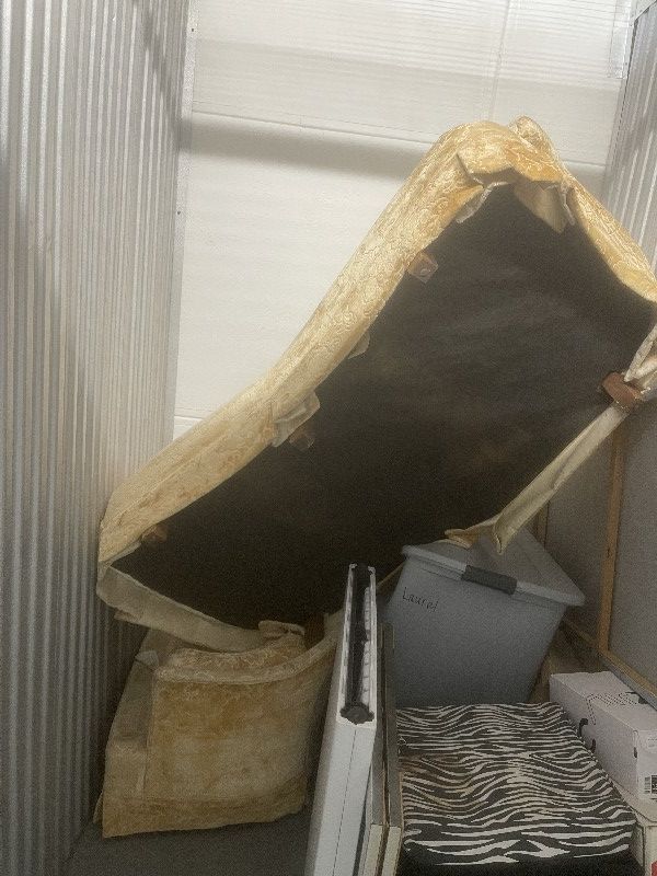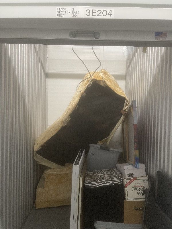 Embark on a journey of home transformation with this auctioned storage unit, presenting a harmonious blend of comfort and aesthetics. Uncover a stylish couch for lounging, a captivating painting to adorn your walls, neatly packed boxes harboring surprises, and a convenient fold-up chair for versatile seating. Bid now to unlock the potential of this curated collection and revitalize your living space effortlessly!