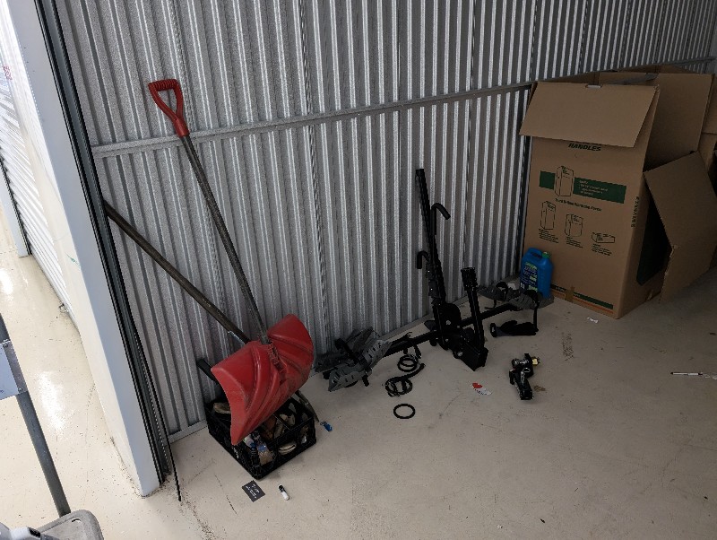 Books, boxes, tools, basket, hitch