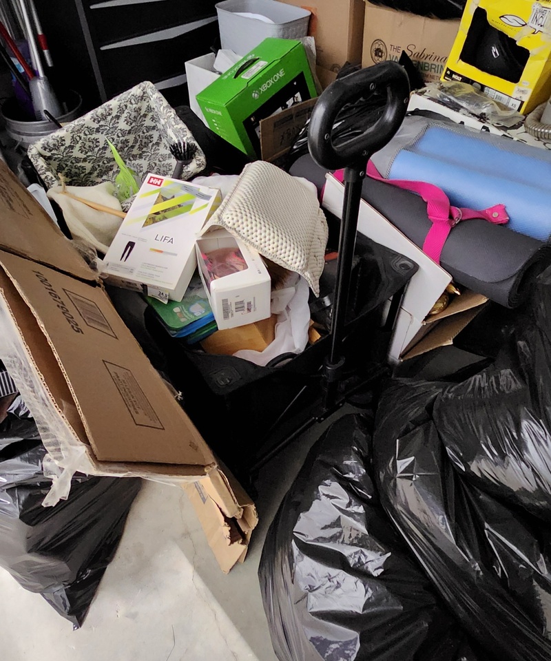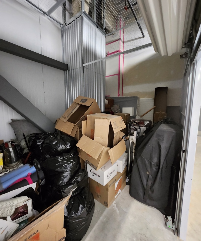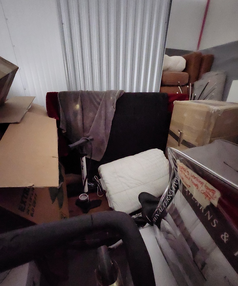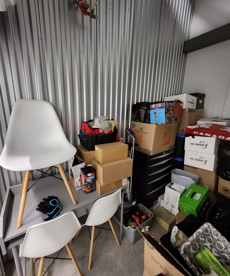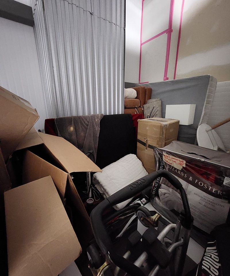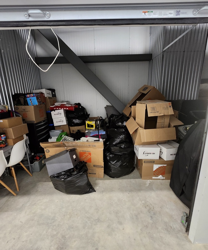 Mattress, couch, table, chair, TV, Dresser, clothes, personal items, tool boxes & misc. tools, misc. boxes & bags, BBQ, dolly, tool chest, desk & chairs, bird cage, carpet cleaner, shopping trolly