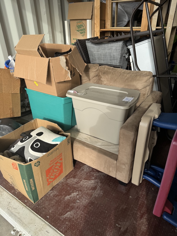 Do not miss this unit filled with household goods!!! Appears to include couch, patio chairs, tv stands, book shelves, and lots and lots of boxes with who knows what inside!!!!