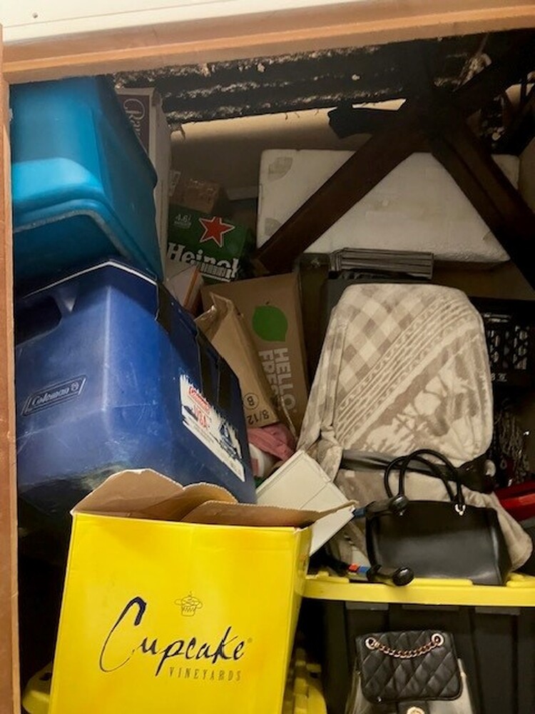 Dining Table,DVD's, Storage bins,Cooler,Purses