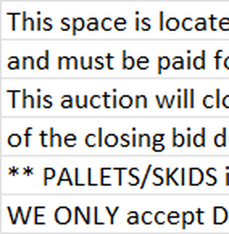 ** PALLETS/SKIDS in the unit are not part of the auction sale and must be left in the unit. **