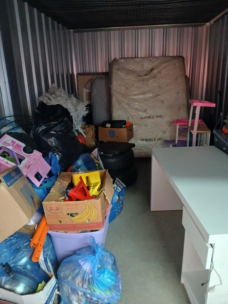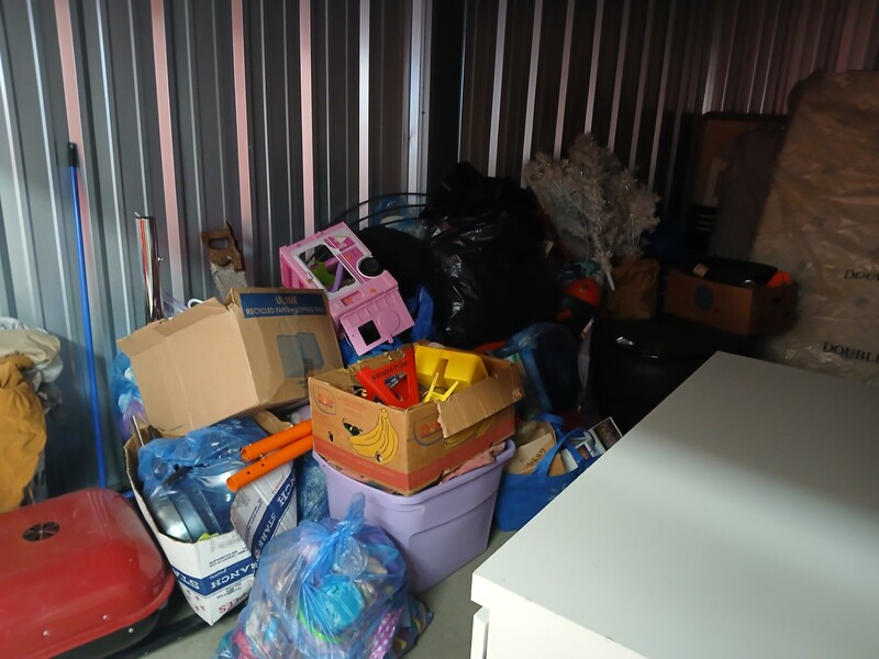 BED FRAME, RESSER, MATTRESS, TIRES, TOYS, BINS,BBQ, POTS, SUITCASE, CLOTHEES, CHRISTMAS TREE, DESK, ETC,ETC
