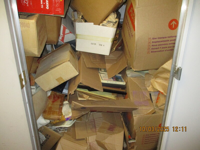 Le contenu doit être COMPLÈTEMENT ramassé. L’unité d’entreposage doit être complètement vidé dans un délai de 48 heures suivant la fermeture de la vente aux enchères. TOUT contenu laissé, alors le dépôt ne sera pas remboursé.