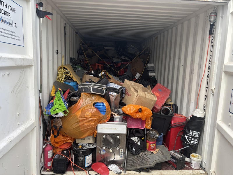All items inside the 20' BigSteelBox are up for auction. Which is loaded with what we believe to be boxes, car accessories, car batteries, a tool boxes, totes, and miscellaneous items