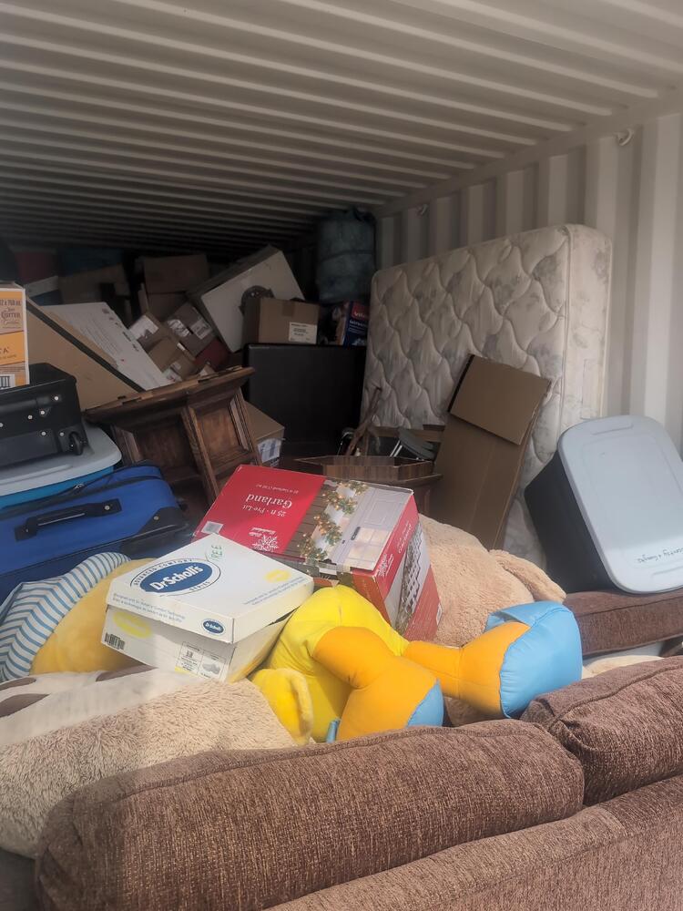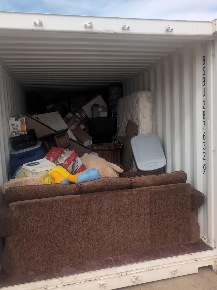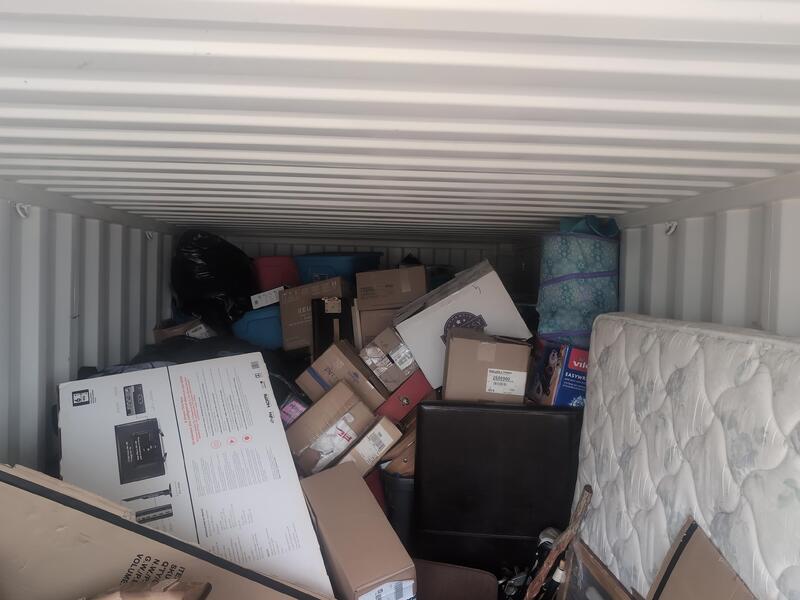All items inside this 20' BigSteelBox are up for auction. Which be believe to be filled with, furniture, a mattress, golf clubs, suit cases, totes and other misc. items.