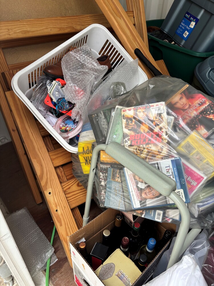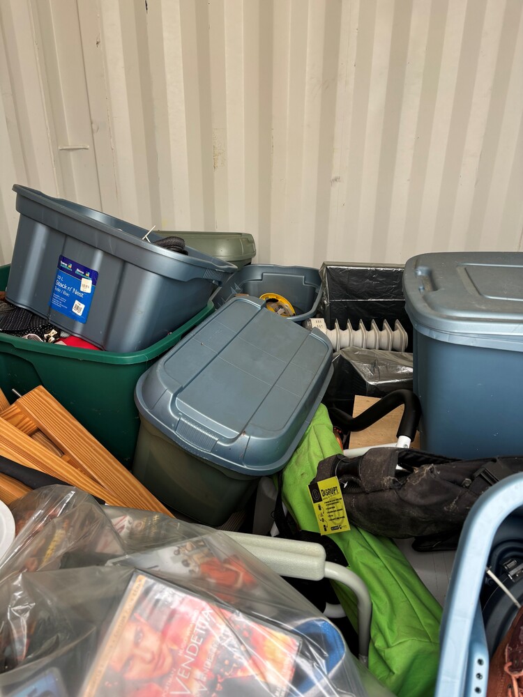 All items inside this 10' BSB are up for auction. Which is loaded with what we believe to be bed frame and mattress, DVD’s, totes, and miscellaneous items