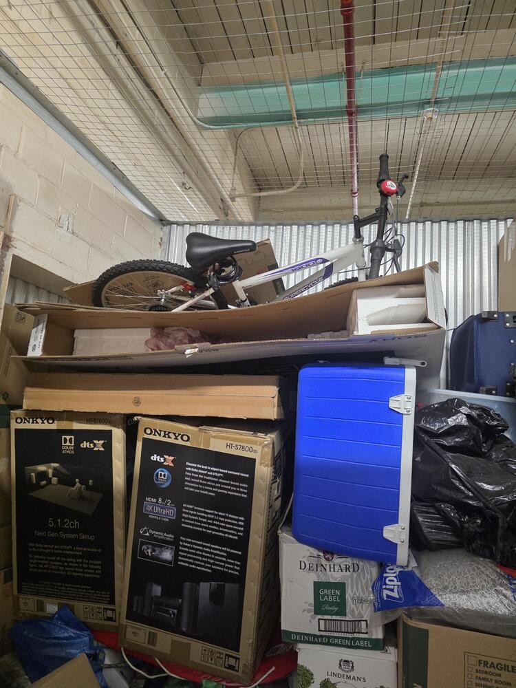 bike, tires, cooler, luggage, chair, speakers, bins, tv boxes, samsung, baby bath