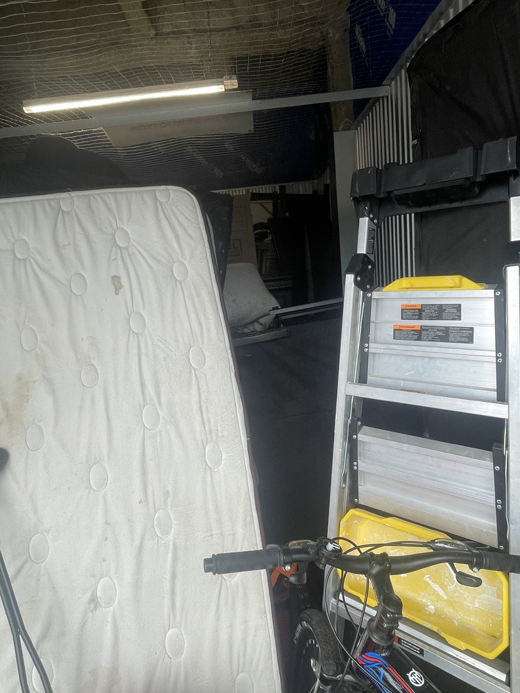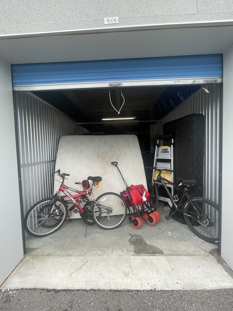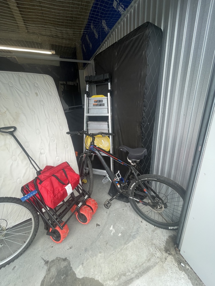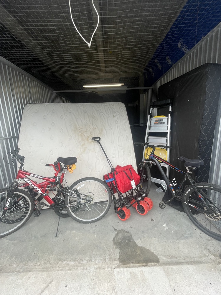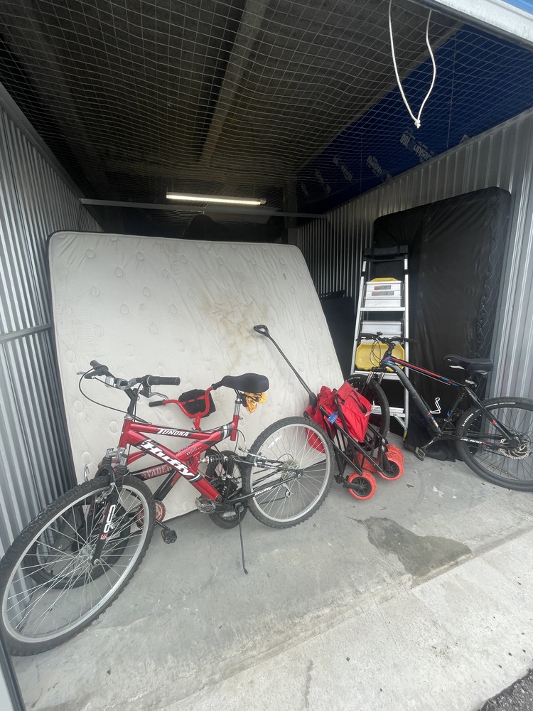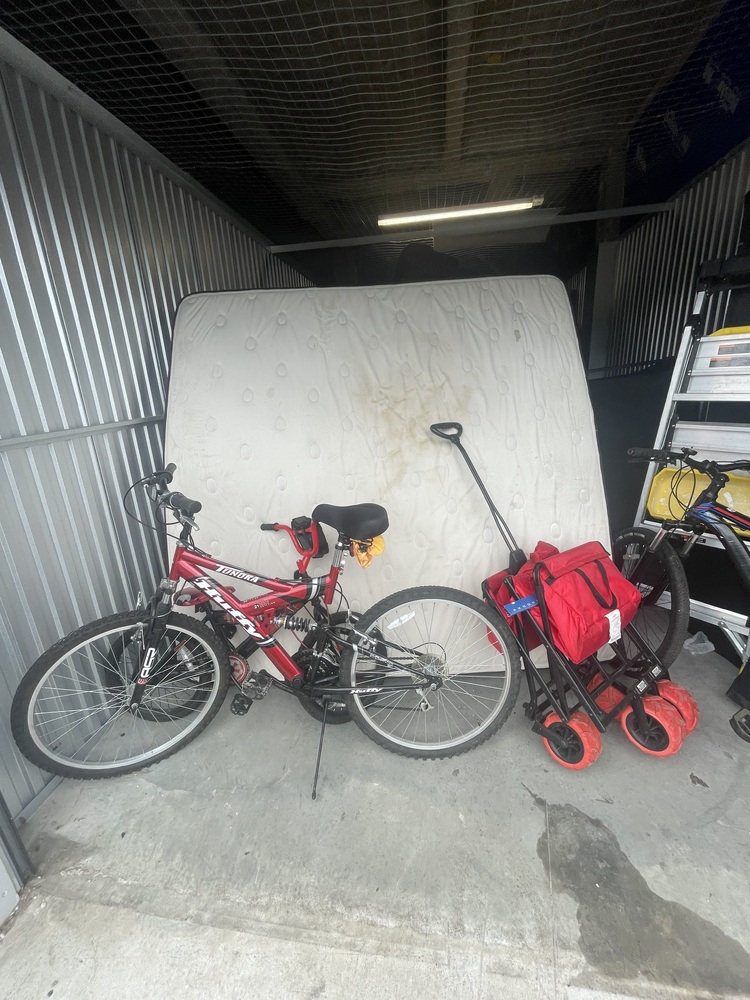 Mattresses, bedding stuff, step ladder, bicycles, furniture, boxes, totes, etc.