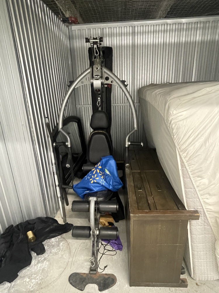 Gym equipment, mattresses, drawer, rack, bedding stuff, TV table, etc.