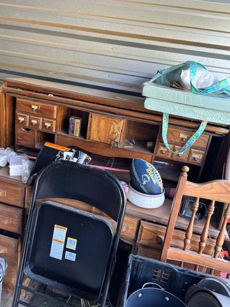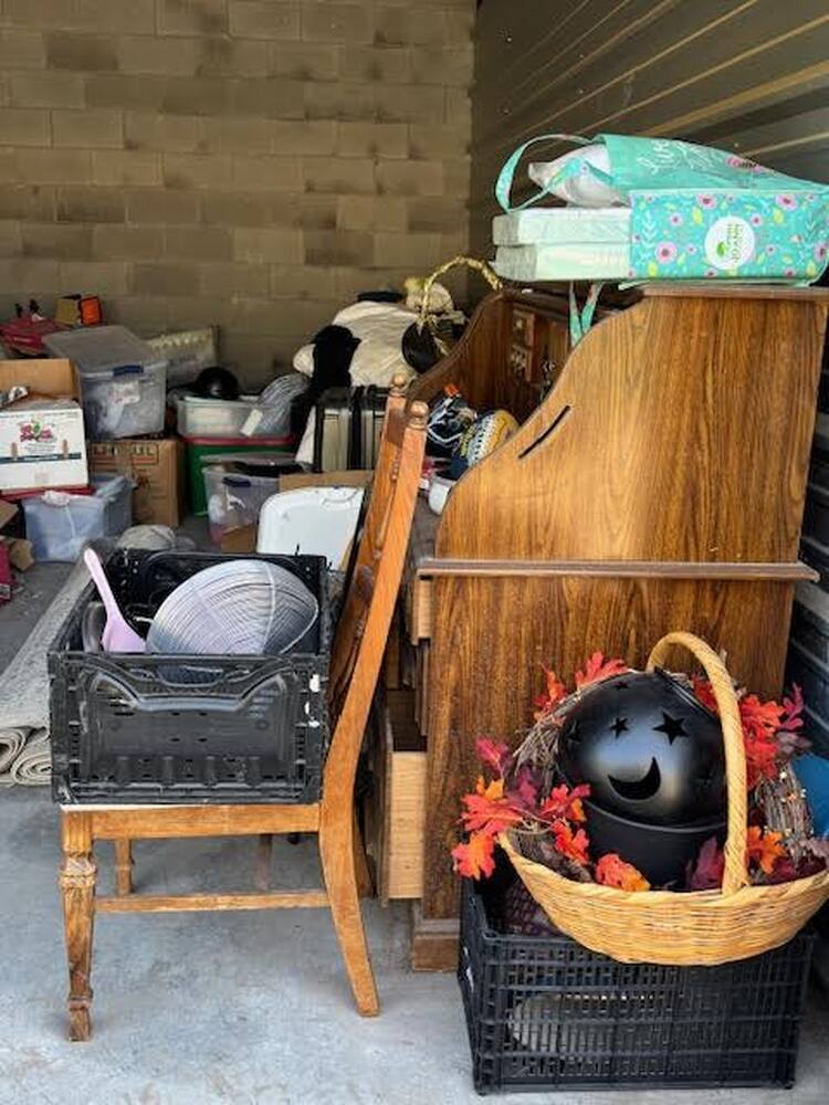 Roll-top desk, End table, Chairs, nightstand, Plant stand, Boxes, Totes, Decor, miscellaneous items
