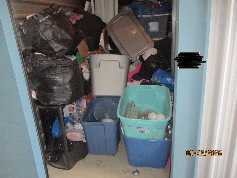 Contenido se recogen completamente. Desocupar la unidad de almacenamiento completamente, dentro de las 48 horas del cierre de la subasta. Si cualquier contenido se quedan atrás, no se devolverá el depósito.