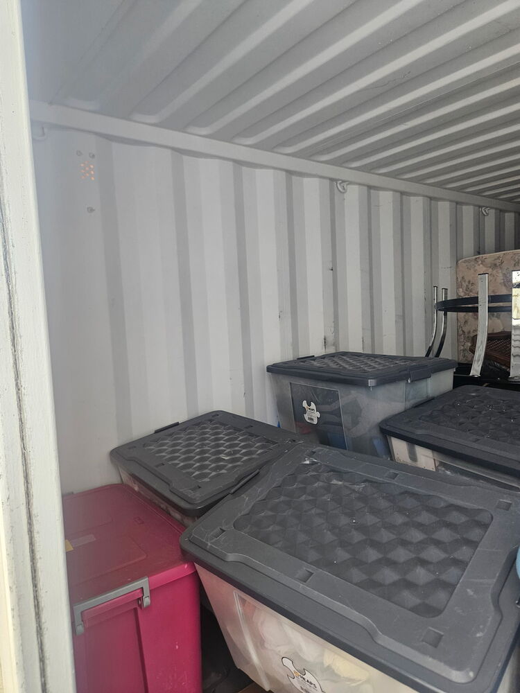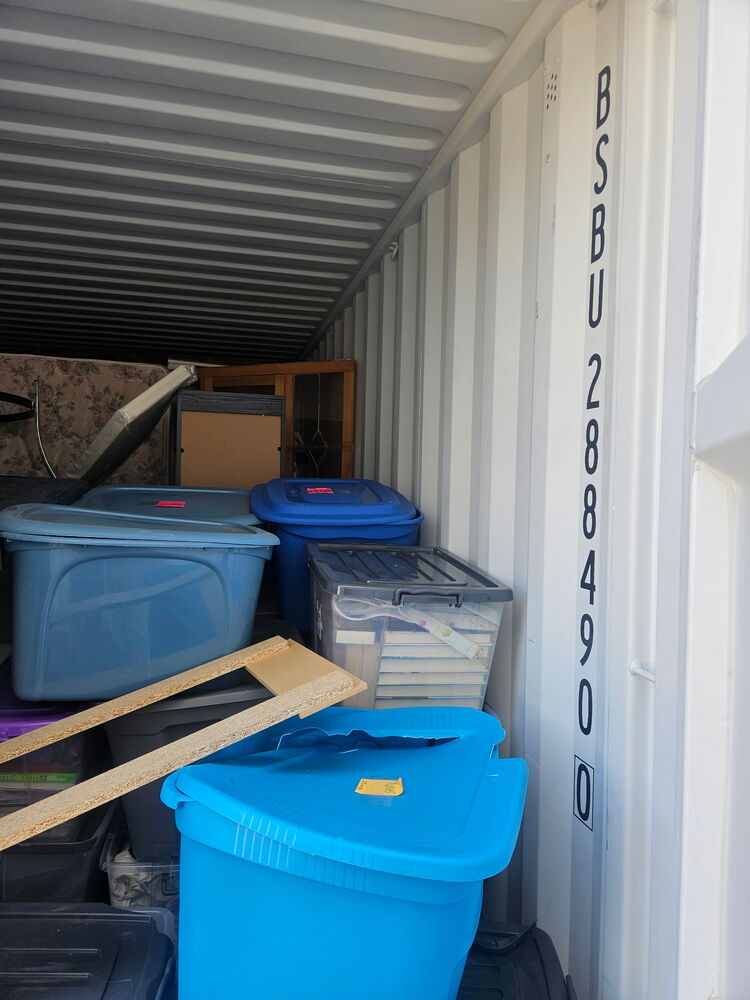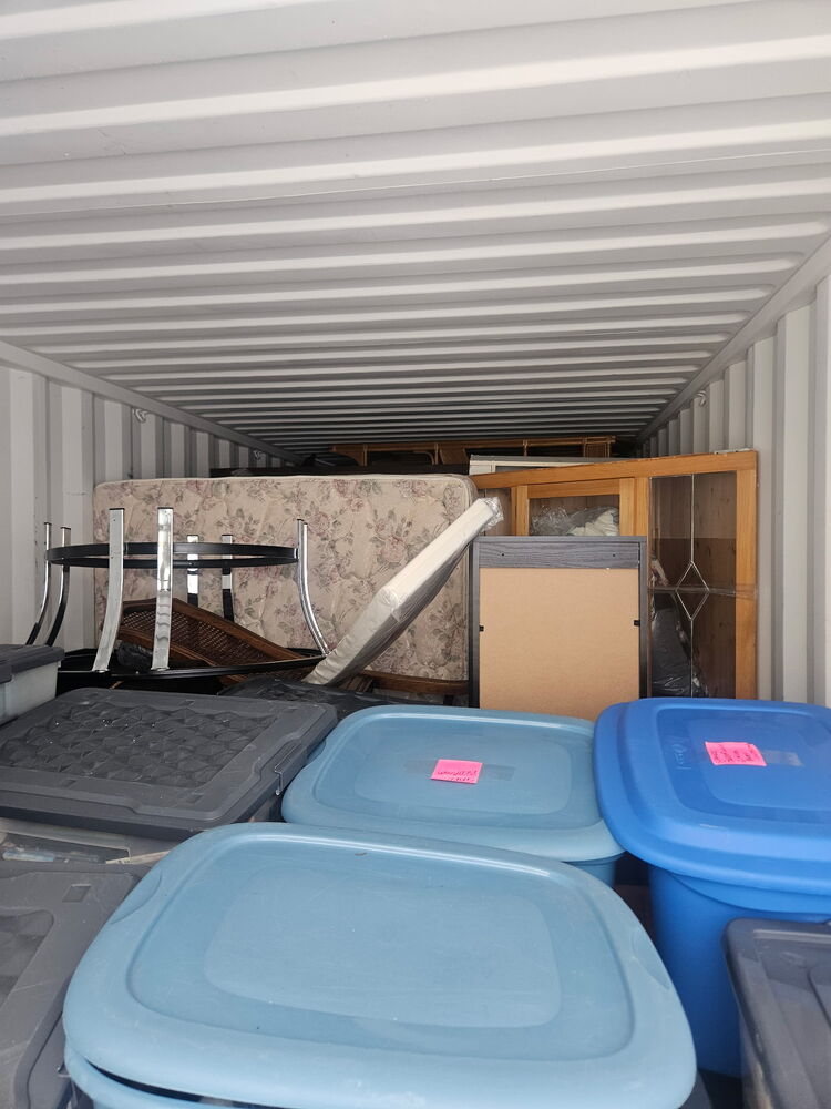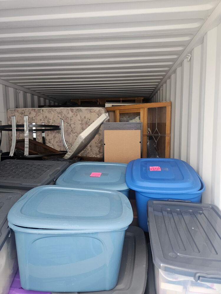All items inside this 20' BSB unit are up for auction. Which is loaded with what we believe to be furniture, totes, a mattress, and other miscellaneous items