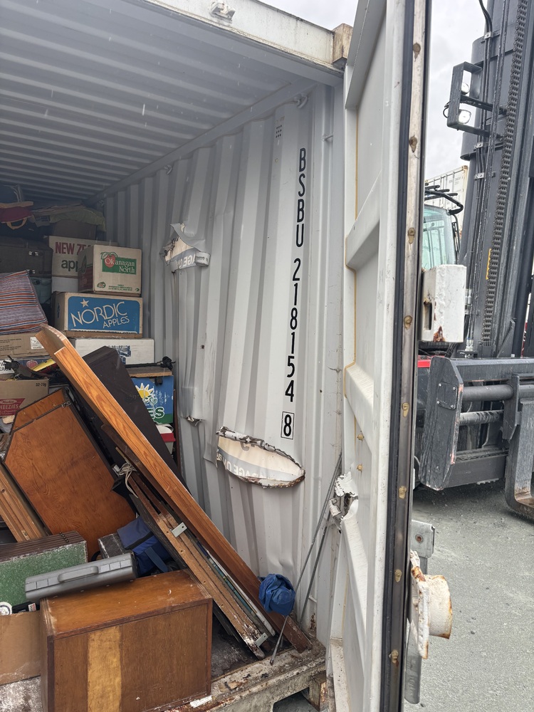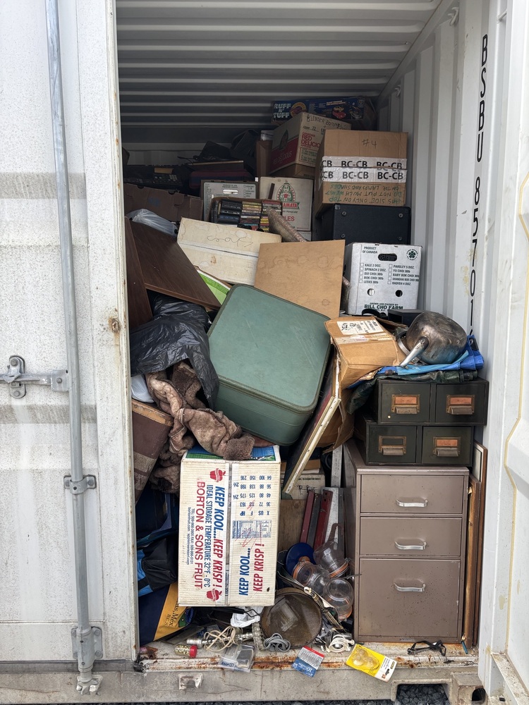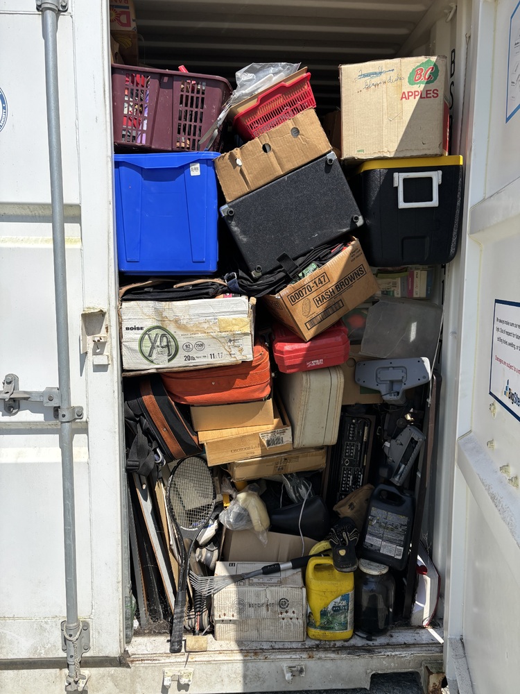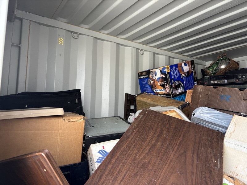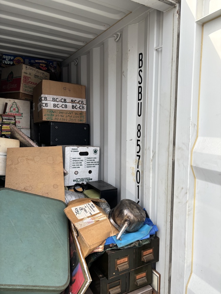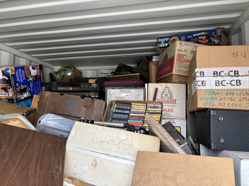 All items inside these 9 (NINE) BSB units are up for auction as one lot sale. Which are loaded with what we believe to be boxes, stereo, guitar case, furniture, suitcases, tires, and other miscellaneous items