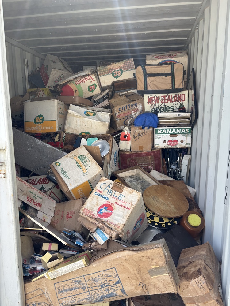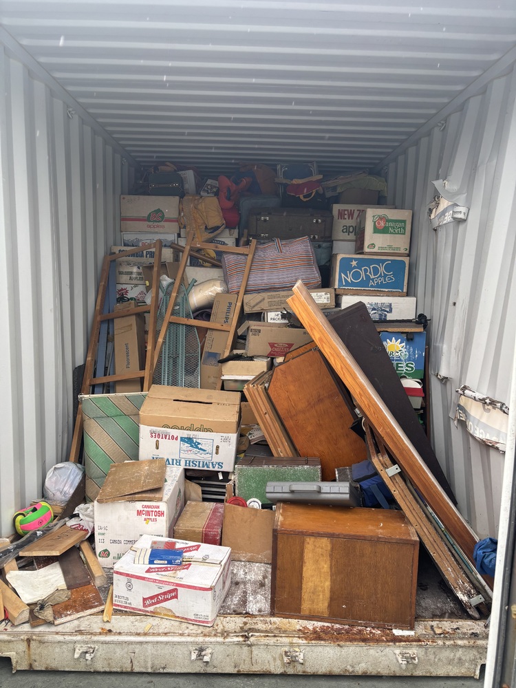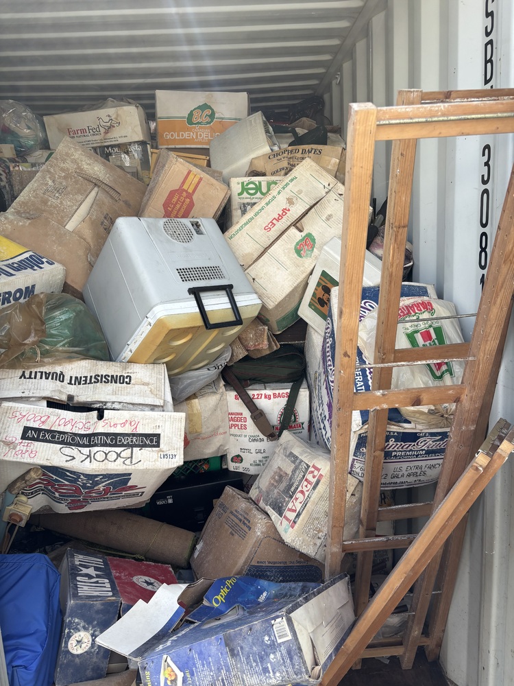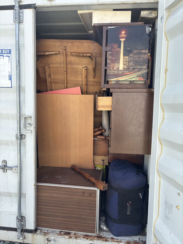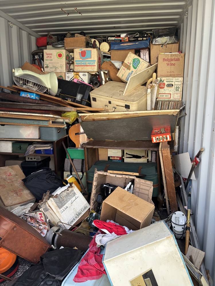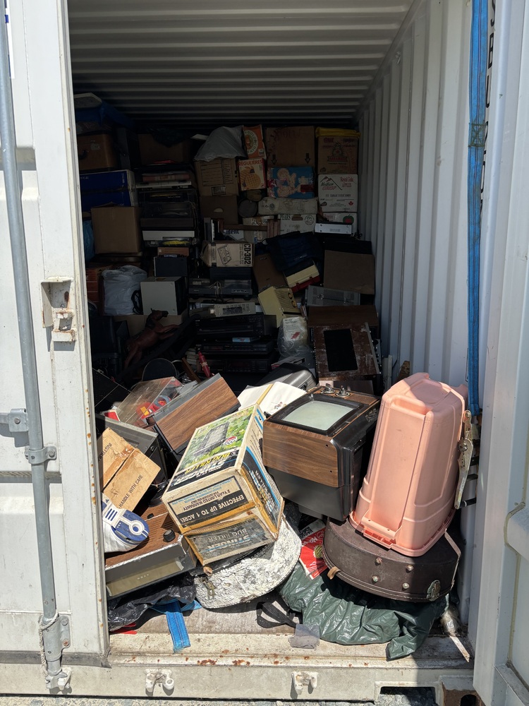 All items inside these 9 (NINE) BSB units are up for auction as one lot sale. Which are loaded with what we believe to be boxes, stereo, guitar case, furniture, suitcases, tires, and other miscellaneous items
