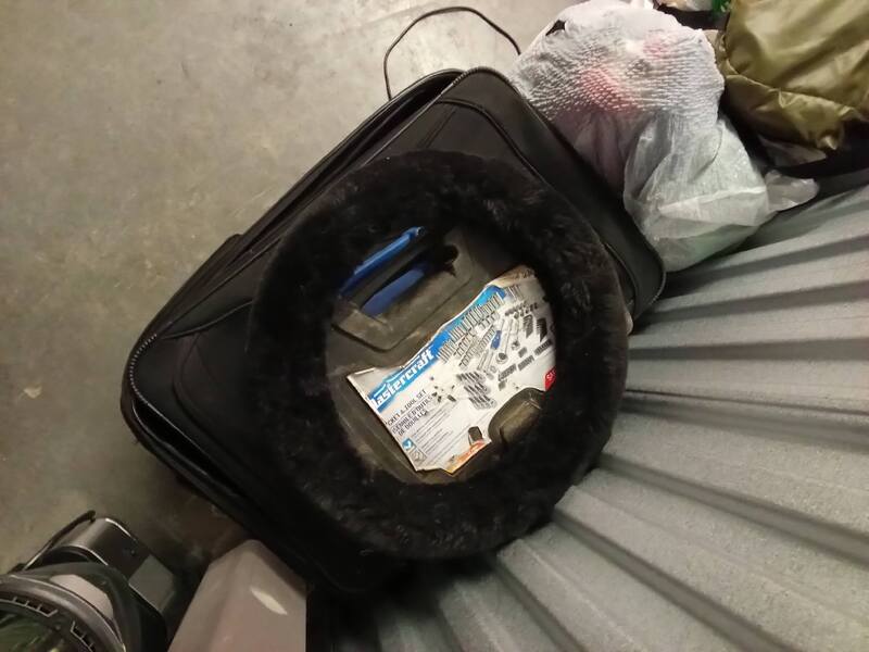 Travel Bags, Tools & Tool Boxes, Clothing, Blender, 2 Motorcycle Helmets, Furry Steering Wheel Cover, Bags.