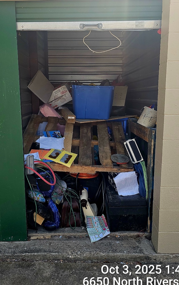 Contenido se recogen completamente. Desocupar la unidad de almacenamiento completamente, dentro de las 48 horas del cierre de la subasta. Si cualquier contenido se quedan atrás, no se devolverá el depósito.