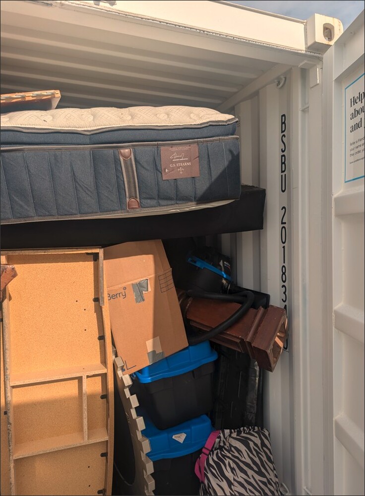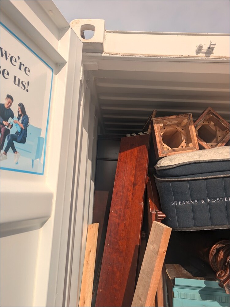 All items inside this 20' BSB container are up for auction. Which is loaded with what we believe to be furniture, a mattress, and other miscellaneous items