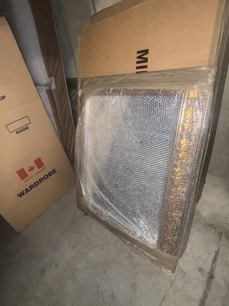 Boxes, Wall Mirror, TV, sofa